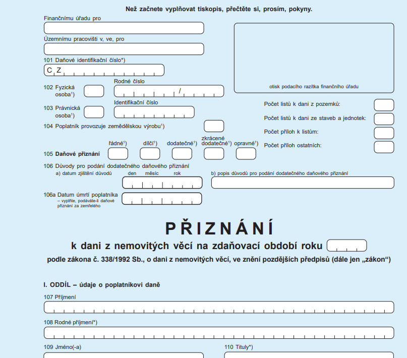 - Daňové přiznání k dani z nemovitých věcí Portal.gov.cz